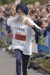 FAJUA SINGH, es el corredor de maratones más viejo del mundo,con más de 100 años, nació el 1 de Abril de 1.911. Entrena unos 17 kilómetros diarios y ha completado unos 7 maratones, en 5 horas 40 minutos. más o menos. Un ejemplo para todos los que corremos y que llevamos este deporte en la sangre.